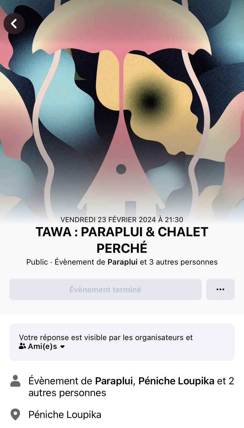 Illustration à l'occasion d'une soirée électro réunissant 2 collectifs : Chalet Perché et Paraplui : supports réseaux sociaux et plateforme de réservation