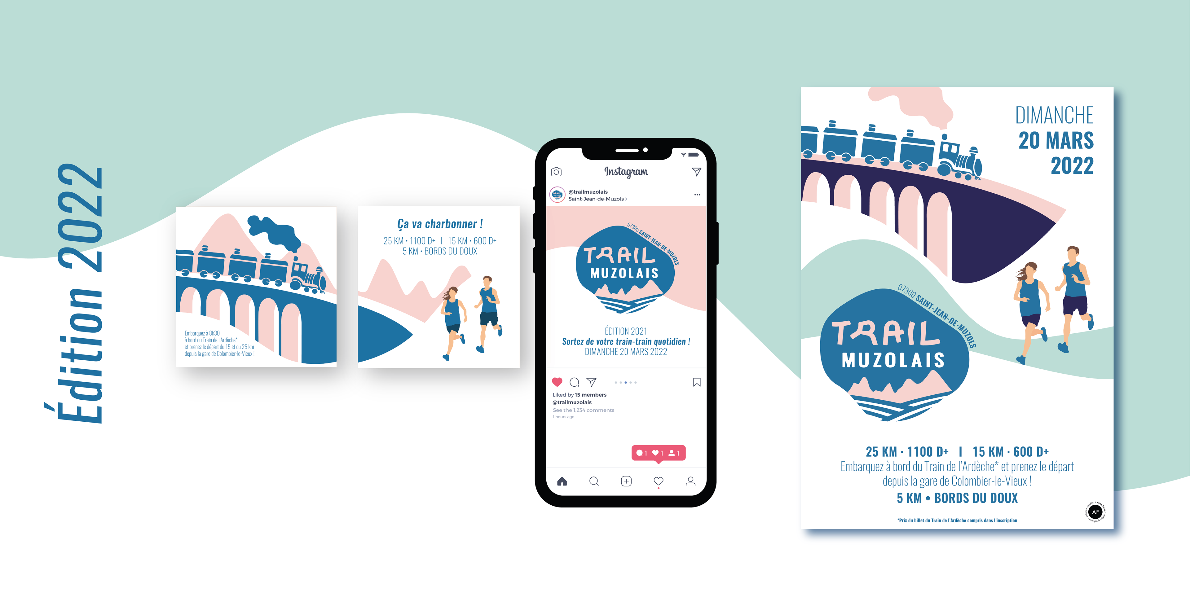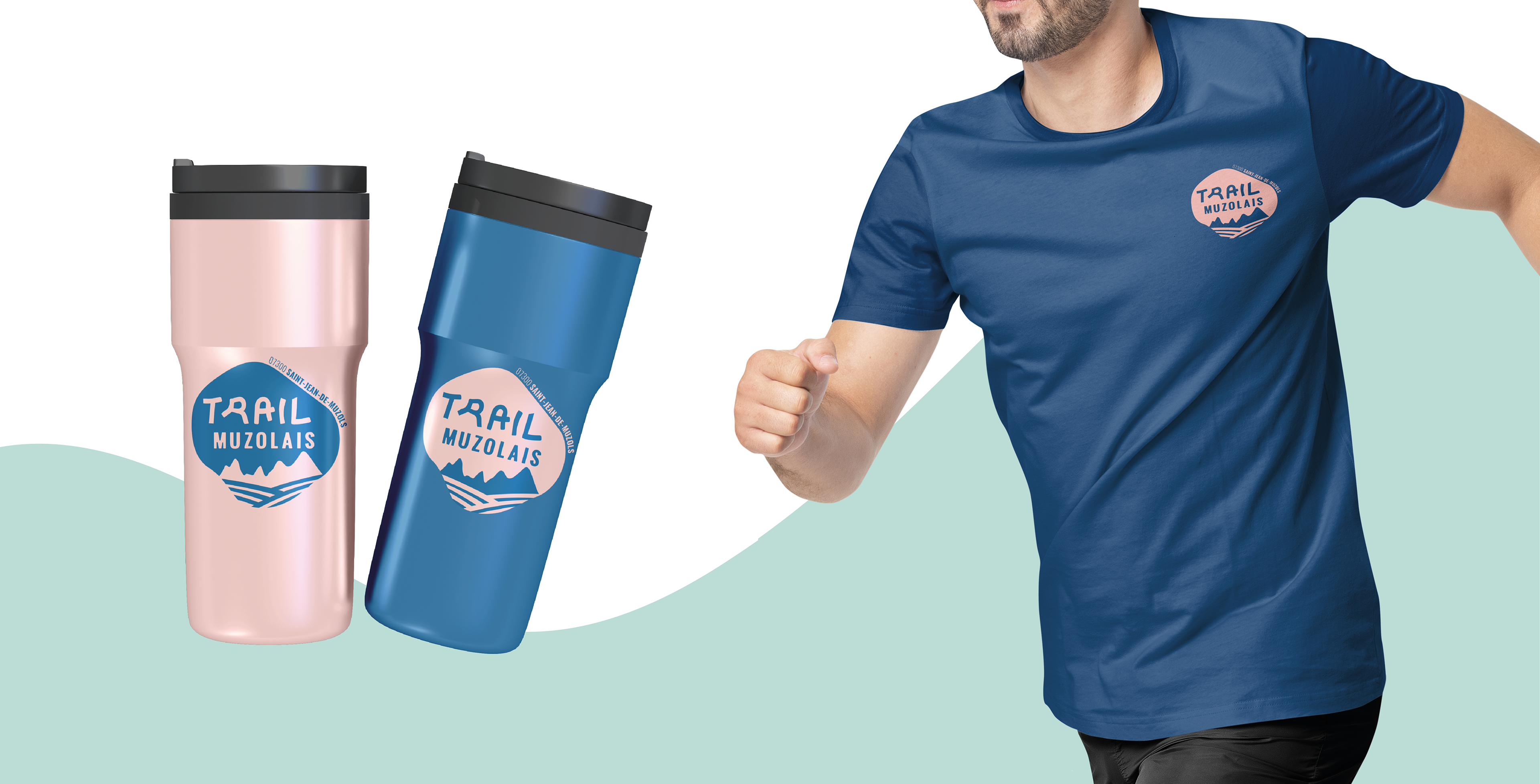 Création de l'identité visuelle du trail ardéchois de Saint-Jean-de-Muzols et ses hauteurs : logo, textile, flyers, réseaux sociaux, PLV et signalétique