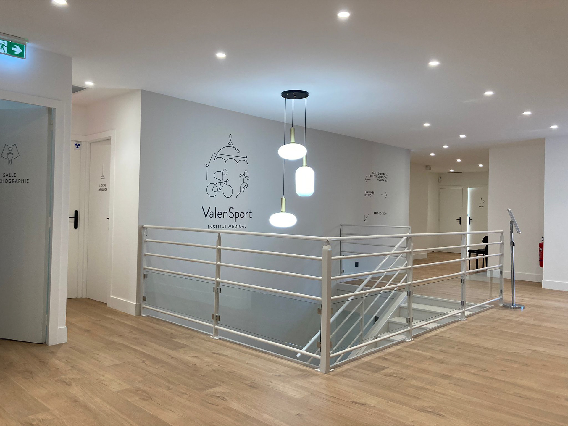 Image de marque et charte graphique pour l'institut médical ValenSport. Logo, couleurs, typo, signalétique des lieux...