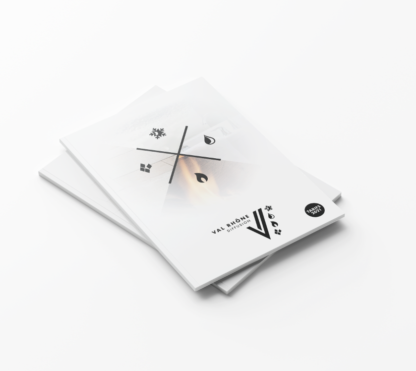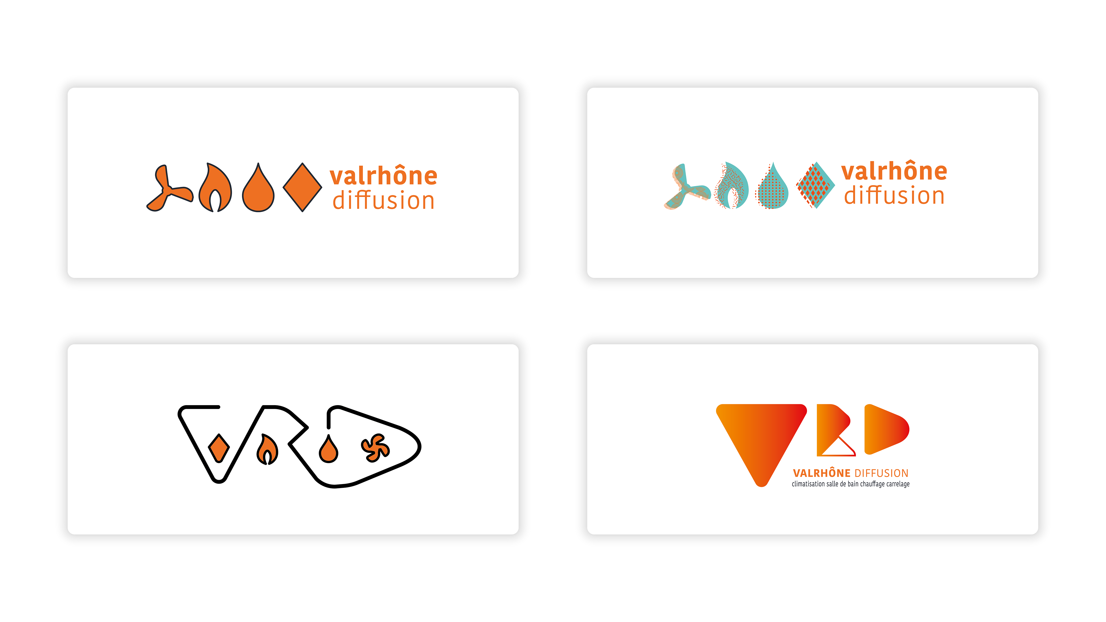 Identité visuelle Valrhône Diffusion, grossiste en plomberie, le chauffage, la climatisation et le carrelage : logo, charte, catalogue et réseaux sociaux.